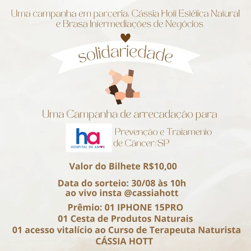 Concorrendo a: 01 Iphone 15 Pro, 01 cesta de produtos Naturais e um Curso em Vídeo Aulas Terapias Naturais Cássia Hott