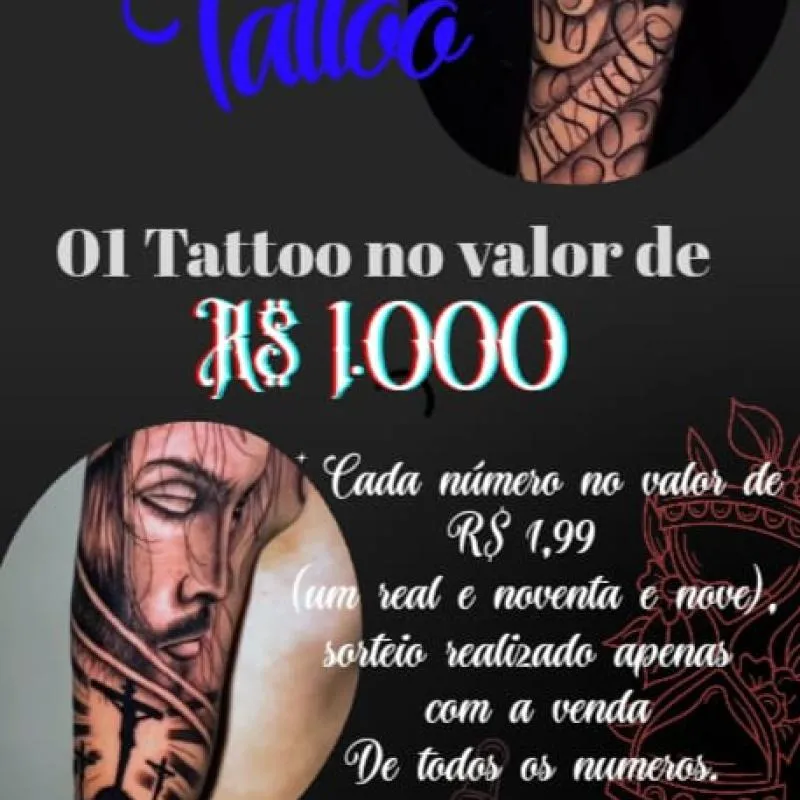 Tá rolando a rifa mais braba do momento: cada número é só R$1,99, e o prêmio é uma tattoo no valor de R$1000! É pra meter arte na pele com estilo e sem pesar no bolso! 💀💉