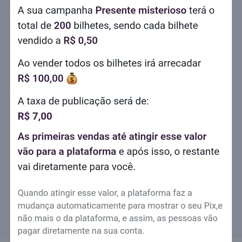 📅 A Data do sorteio será divulgado quando obter 70% das cotas vendidas.