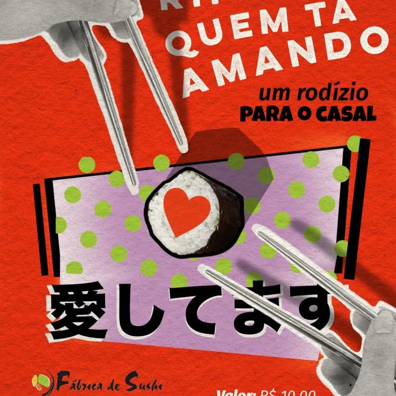 O Dia dos Namorados tá batendo na porta, e se você tá amando e quer impressionar seu crush, a gente tem a solução: uma rifa maneira pra ganhar um jantar de japonês pro casal! 🍣