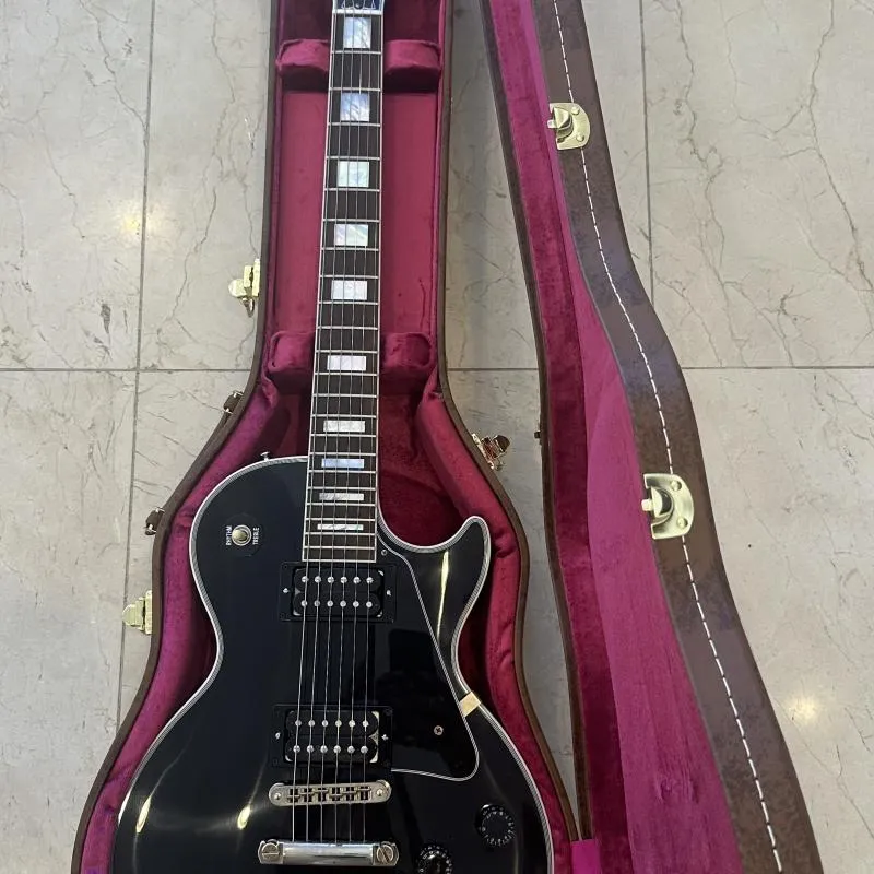 - Uma guitarra elétrica Gibson Les Paul Custom, Black Beauty, pronta para você soltar o rockstar que existe em você! 🎸✨