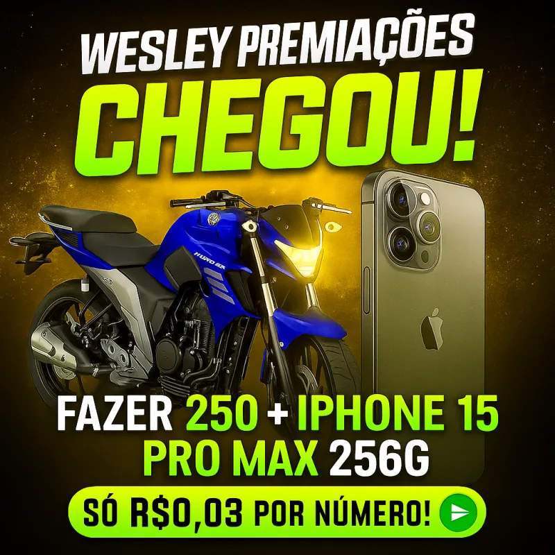 🎯 RIFA PREMIADA OFICIAL – FAZER 250 + IPHONE 16 PRO MAX!